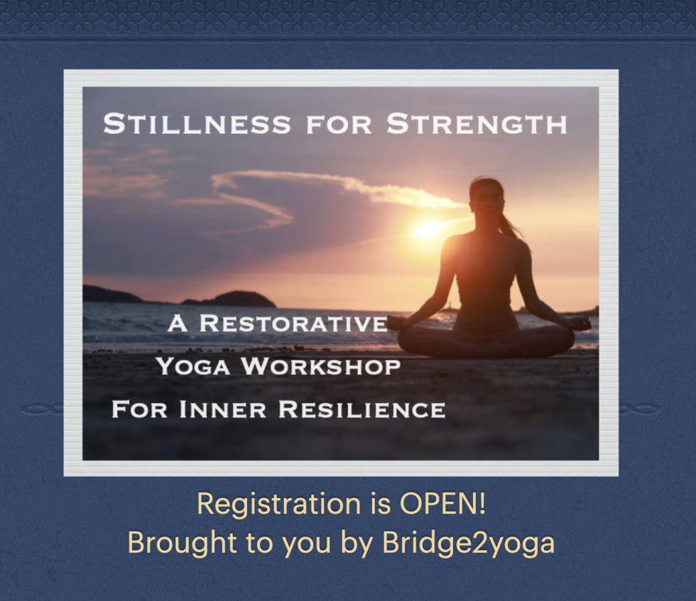 Register for this free event HERE. You must register to attend this Event. Details also posted at Bridge2yoga.com