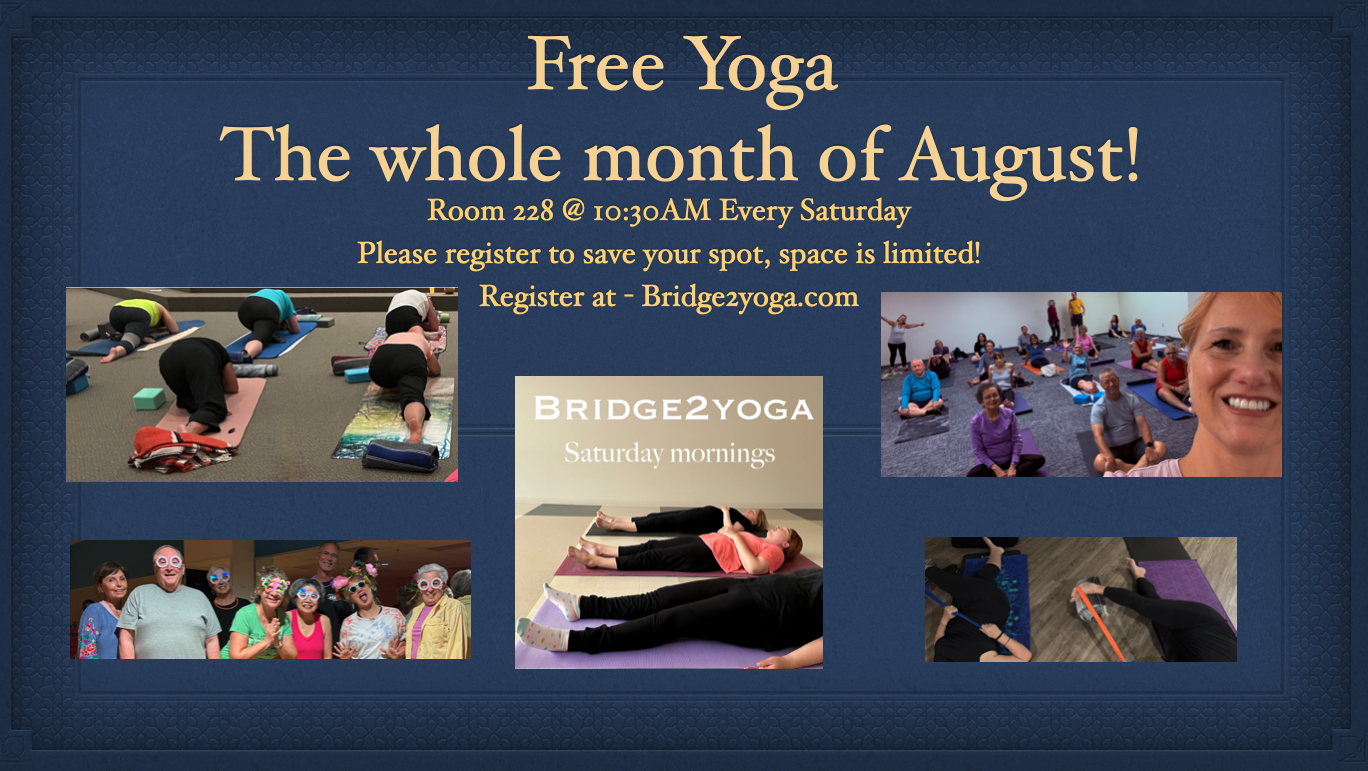 All of August is completely FREE! Come and check out the vibe in room 228 on Saturdays at 10:30am! Bridge2Yoga specializes in accessible Yoga at the level you need. Each Saturday these practices will favor a more Gentles style of flow and tailored for beginners up to intermediate. With each class you are encouraged to […]